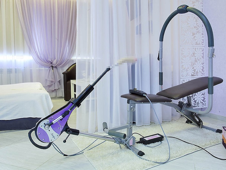 Разумеется, с развитием прогресса машину много раз усовершенствовали. И если прототип был механическим (такие, кстати, и сегодня представлены в изобилии), то данная модель приводится в движение электричеством. Представляет она собой кушетку с поручнем, мощный электродвигатель и пульт управления, которым регулируется интенсивность движений. А также сложная система шарниров, благодаря которой машина подстраивается под самые разные позы.